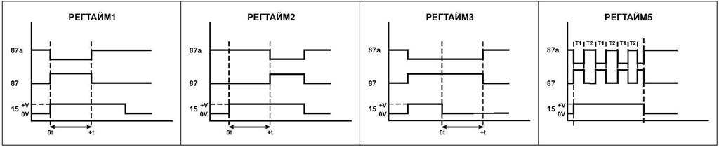 Реле используются для включения на (РЕГТАЙМ1), через (РЕГТАЙМ2) или с задержкой выключения на (РЕГТАЙМ3) определенное время. РЕГТАЙМ5 представляет из себя генератор импульсов, длительность и частота которых регулируются двумя многооборотными подстроечными резисторами.