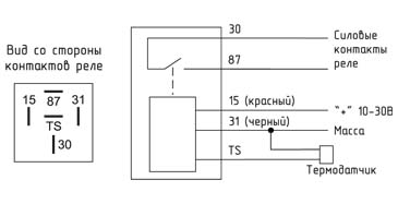 Предназначено для включения/выключения электрических цепей при достижении определенной температуры. Реле используются в сетях постоянного тока с напряжением до 30В и максимальным коммутируемым током 25А. Температура и гистерезис включения/выключения настраиваются по требованию заказчика от -45°С до +125°С.