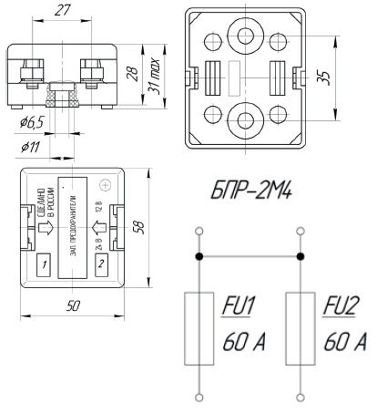 Блок предохранителей БПР-2М4 Ф5.3722.005-06 Ф5.3722.001 ТУ (Копир, Россия)