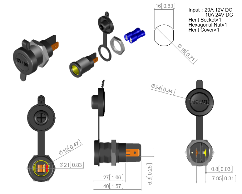 DIN-гнездо для штекеров d12mm SF50881-1 12V 20A/24V 10A