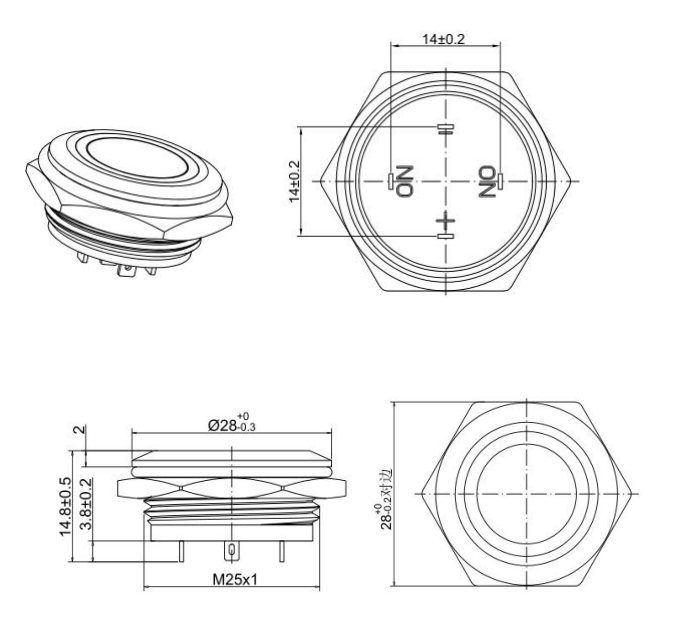 Кнопка (без фиксации) PX25CM-P10Y/EW12V/S с белой подсветкой