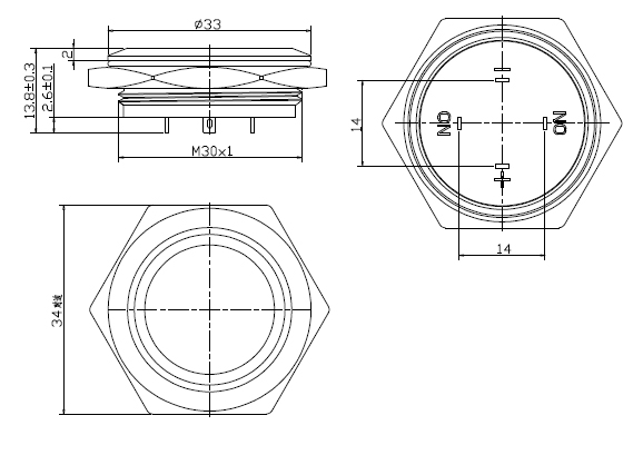Кнопка (без фиксации) PX30CM-P10Y/EW12V/S с белой подсветкой