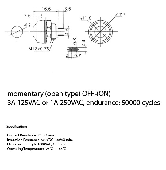 Кнопка PBS-33 зеленая OFF-(ON) без фиксации 12V 1A