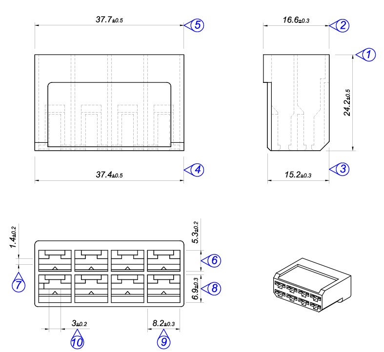 Колодка гнездовая KE-3210 (восьмиконтактная, 100 шт.)