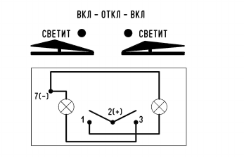 ON-OFF-ON, 2 светодиода, 12В - 20А; 24В -10А