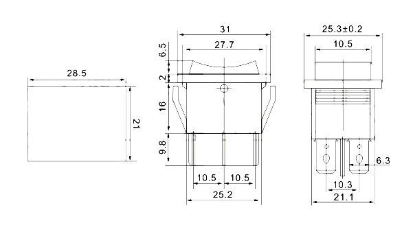 Переключатель KCD2-203N 6с 12в красный, ON-OFF-ON (аналог В-509)