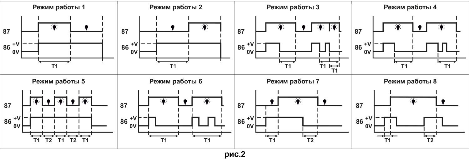 2.2.При подаче питания реле начнёт работать в предварительно заданном режиме в соответствии с диаграммой (рис.2).