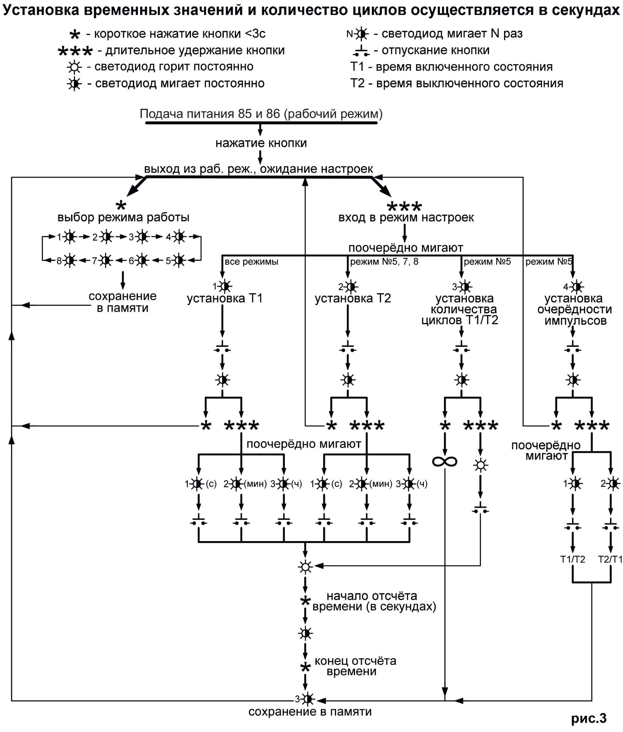 1.3.Настроить параметры реле с помощью кнопки в соответствии с диаграммой (рис.3).