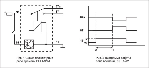 Реле начинает работать после подачи напряжения питания на вывод «15» и в процессе работы должно быть всегда запитано (рис.2). Поэтому, для включения/выключения реле, следует использовать кнопку с фиксацией (или тумблер).