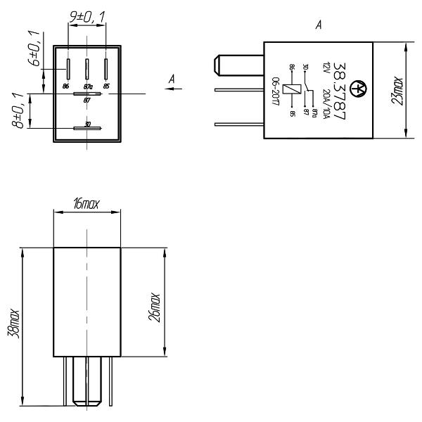 Реле 38.3787 12В 20/10А 5-ти контактное (Энергомаш)