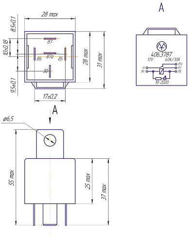 Реле 406.3787 12В 40А/30А со светодиодом 5-ти контактное (Энергомаш)