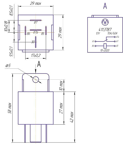 Реле 411.3787 12В 70А/60А 5-ти контактное (Энергомаш)