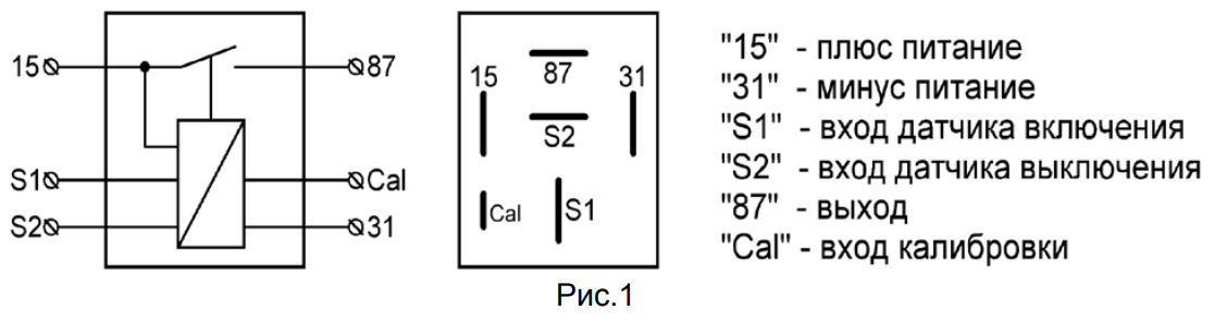 1.4 Кратковременно подать “+” питания на вход калибровки (“Cal”). Светодиод мигнет 3 раза. Реле определит и сохранит в энергонезависимой памяти состояние датчиков как исходное.