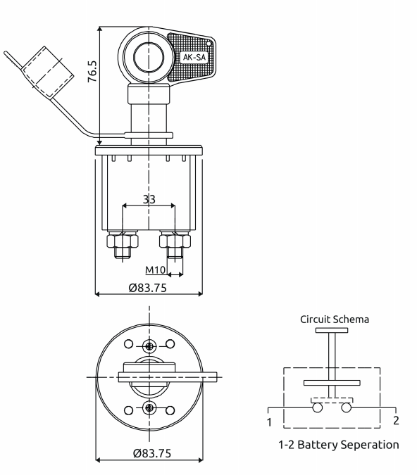 Выключатель "массы" 06-013 (12-24B, 100/500A)