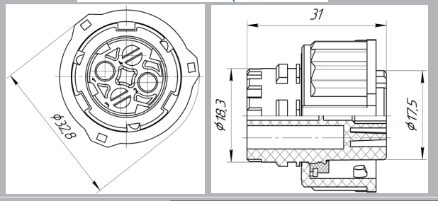 оединитель электрический цилиндрический разъёмный, с фиксацией сочленённого положения накидной гайкой байонетного типа, защищённого исполнения, типа СЦБ, предназначен для использования в изделиях автотракторного электрооборудования для монтажа жгута проводов с медными жилами сечением от 0,5мм² до 2,5мм²