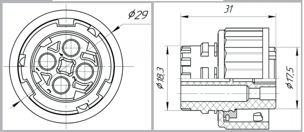 Соединитель электрический цилиндрический разъёмный,