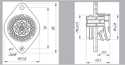 Розетки СЦБ-35Р. могут комплектоваться адаптером Ф57.190.875, втулкой Ф57.860.018, и гайкой Ф58.939.019.