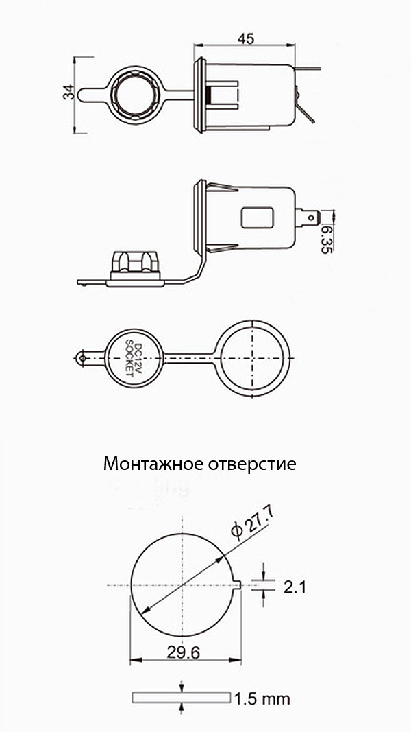 Гнездо прикуривателя А13-65C 12В 20A под защелку