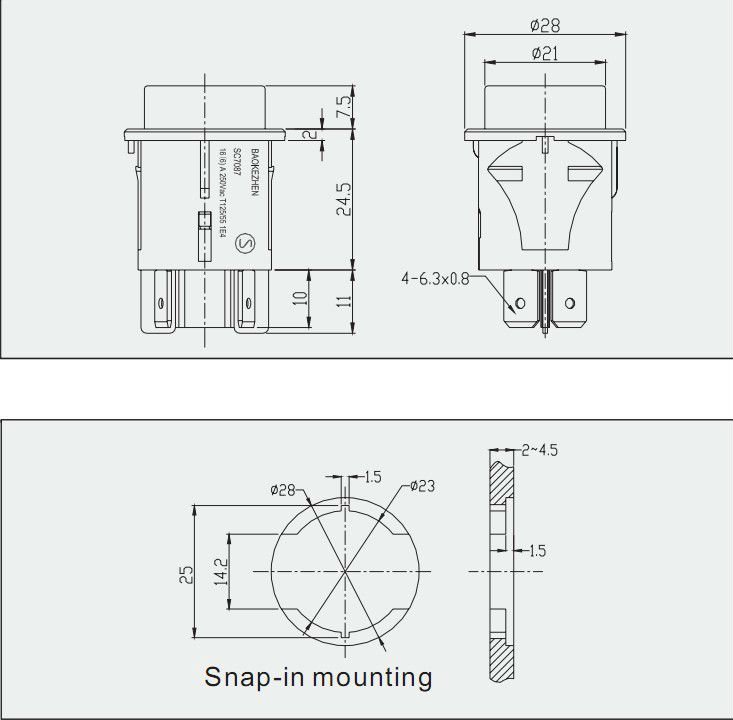 Кнопка Sc-7087 с фиксацией и синей подсветкой, 12В,16A