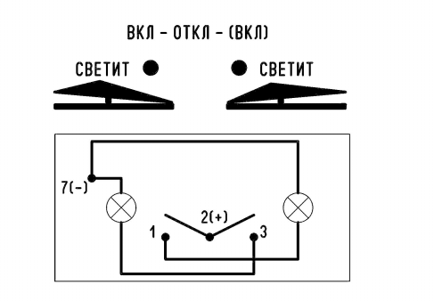 (ON)-OFF-ON, 2 светодиода, 12В - 20А; 24В -10А