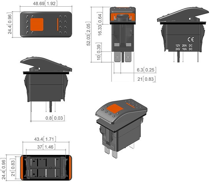 Переключатель 12-24В SF50713-6-4P-A6BO-02 ON-OFF с оранжевой подсветкой, REVERSE LIGHTS