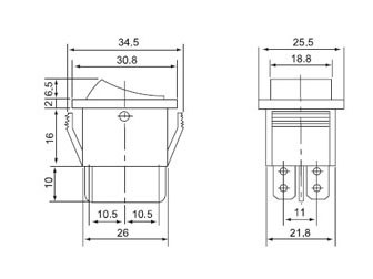 Переключатель KCD2-201 4с 12В, 15А ON-OFF чёрный (767) (аналог B-501)