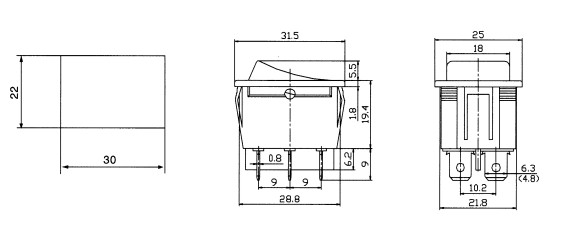 Переключатель клавишный RS-223-4C 15A 12V (ON)-OFF-(ON)