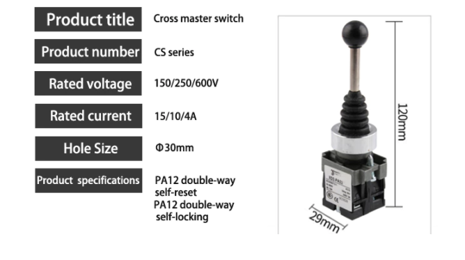 РА-12 Джойстик на 2 положения с фиксацией на 2-е N/O группы контактов 10A 600V 3A 240V