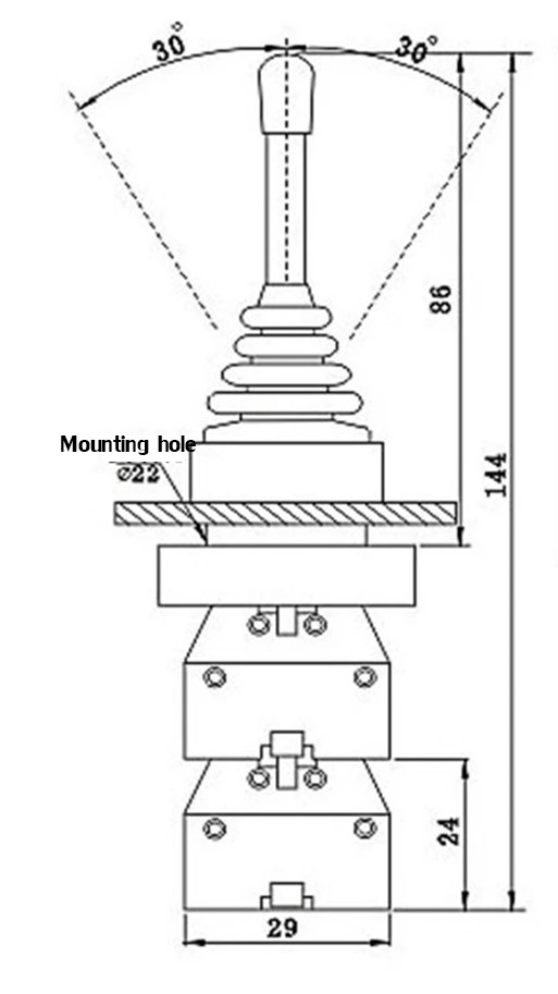 РА-14 Переключатель-джойстик на 4 положения с фиксацией на 4-ре N/O группы контактов 10A