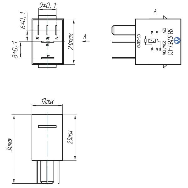 Реле 38.3787-01 12В 20/10А 5-ти контактное с резистором (Энергомаш)