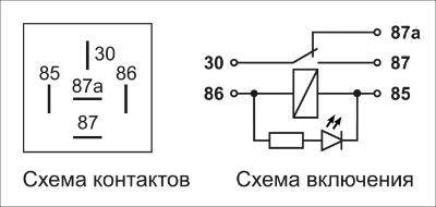 Реле 406.3787 12В 40А/30А со светодиодом 5-ти контактное (Энергомаш)