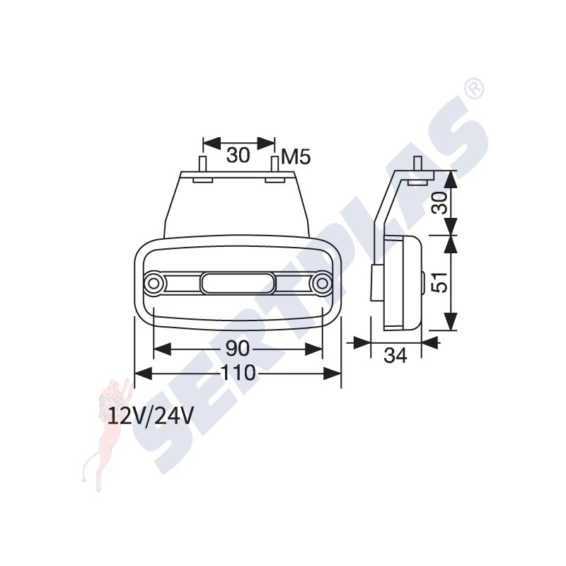 Светодиодный боковой габаритный фонарь 12/24В, с кабелем 0651LUS (3 светодиода)