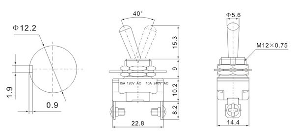 Тумблер ASW-23-102А ON-ON 12В(220В), 10А