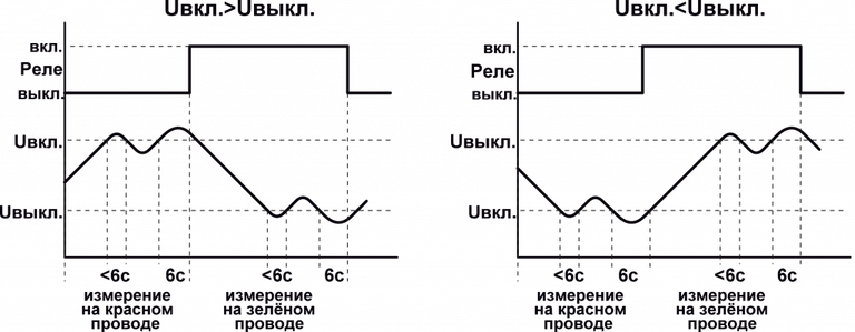 Примечание. Устройство работоспособно при условии настройки Uвкл.≠Uвыкл.