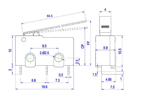 Влагозащищенный микропереключатель Sc-7301, 3с с пластиной